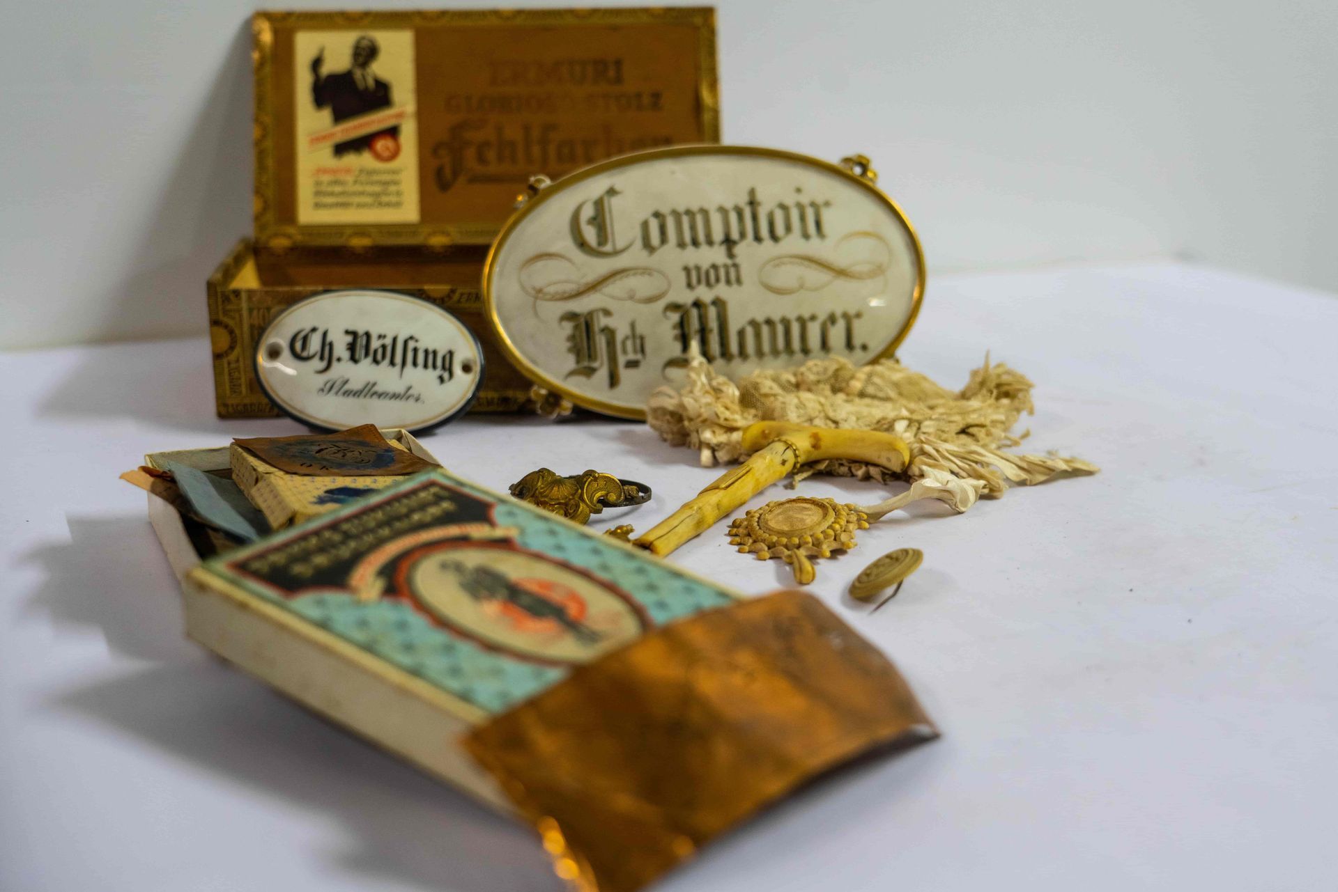 Diese Objekte stammen aus dem ehemaligen Stadtmuseum, das zur Brandnacht 1944 im Pädagog war oder Objekte aus ehemaligem Privatbesitz, die dem Stadtarchiv übergegeben worden sind.