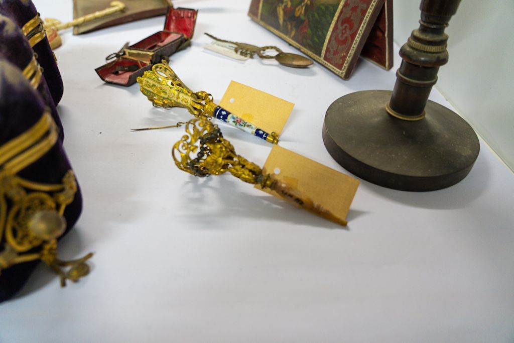 Auch im Schlossmuseum wird man Objekte mit einem Aufkleber des Stadtmuseums finden. Es sind z.B. Möbel aus dem Neuen Palais.